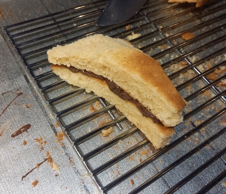 - Kívülről nutellával kentem be a csirkét, hogy jobban ragadjon rá a kakaós palacsinta pogácsák. A nutella nagyon jó ragasztó anyag, mert nem hullott le egyetlen korong sem, az autóban szállítást is kibírta.